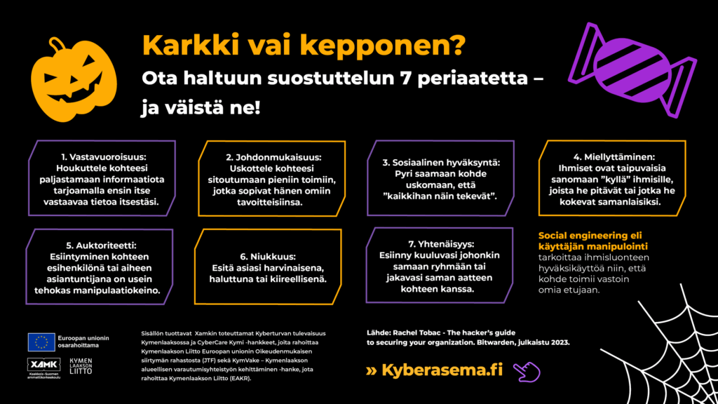 Lokakuu tuo mukanaan kurpitsat, kummitukset ja karkit, sekä Kyberkuun! Lokakuussa alueemme yrittäjät saavat mahdollisuuden vahvistaa yrityksensä digiturvaa hauskalla ja hyödyllisellä tavalla. Halloweenin hengessä Kyberkuussa sukelletaan kyberuhkien maailmaan, mutta ei pelolla, vaan tiedolla ja taidolla.