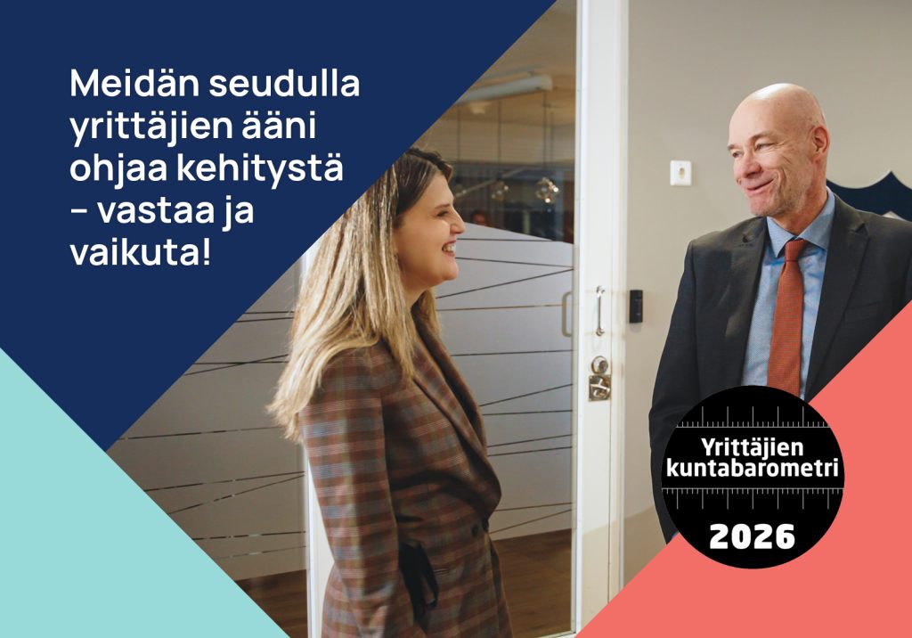 Kuntabarometrin tulokset ovat kunnillemme aito kehittämisen työkalu. Tulosten perusteella kunnat näkevät, missä menee hyvin ja mitä voimme vielä parantaa, jotta yrittäjillä olisi mahdollisimman hyvät edellytykset toimia seudullamme. On siis tärkeää, että annat äänesi kuulua. Vastaajan ei tarvitse olla Suomen yrittäjien jäsen. Jokaisella vastauksella on merkitystä, edustitpa sitten yhden ammattilaisen pienyritystä tai satoja henkilöitä työllistävää suuryritystä.